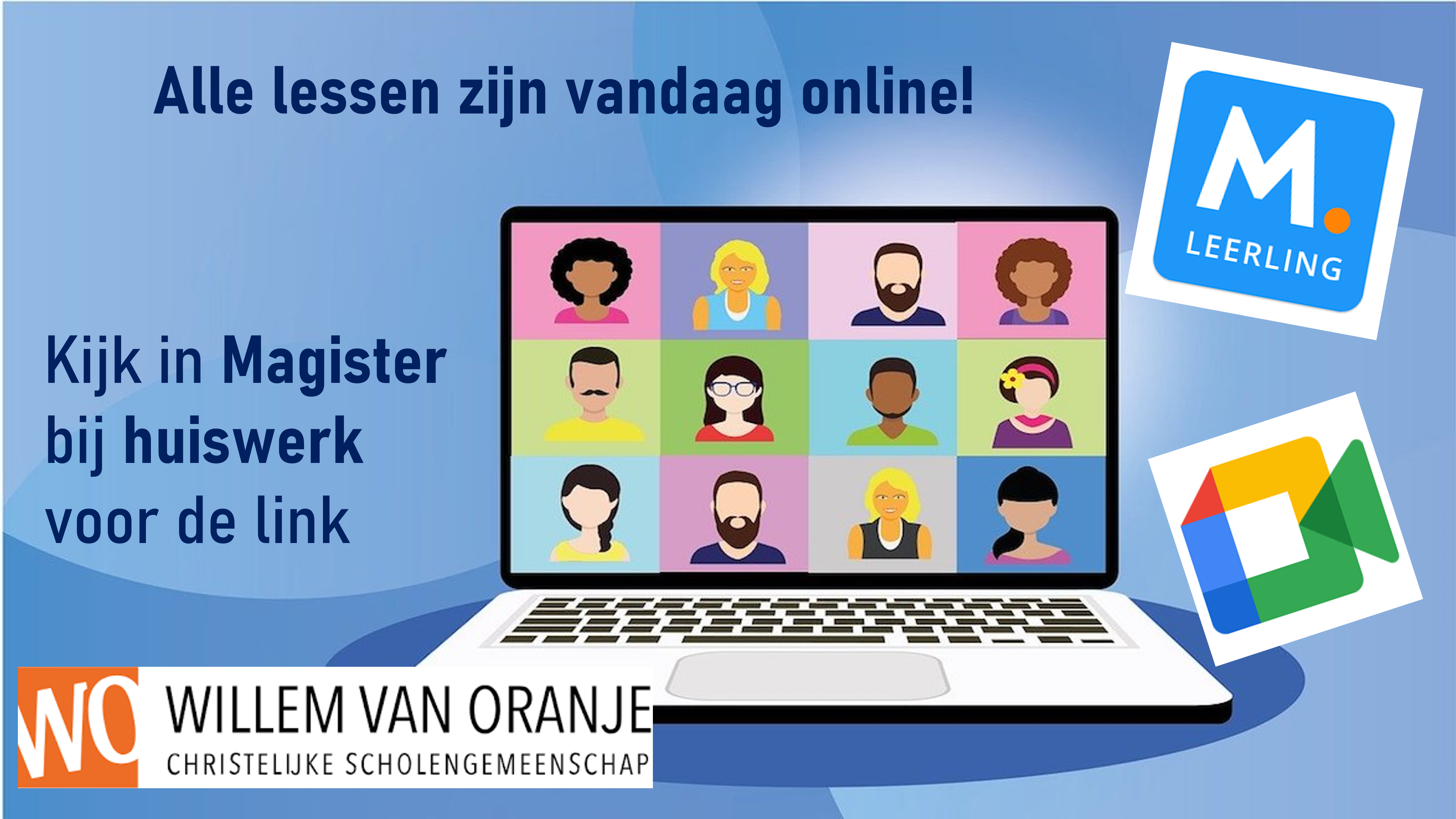 In verband met de huidige en verwachte weersomstandigheden is besloten om de lessen op woensdag 7 januari volgens rooster online te laten plaatsvinden. Kijk in Magister bij huiswerk voor de juiste link per les.