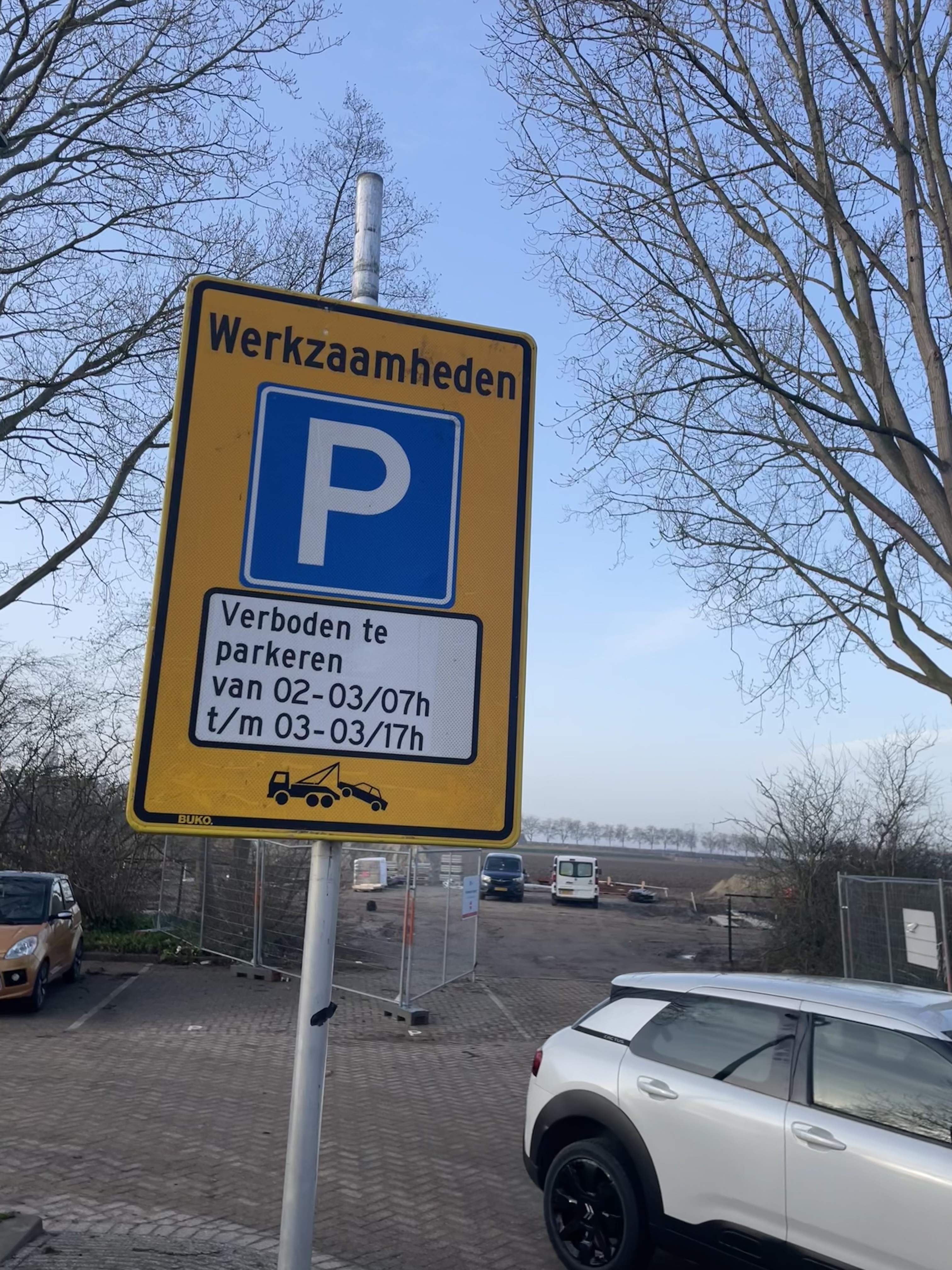 Het is van maandag 2 maart 07.00 uur tot en met dinsdag 3 maart 17.00 uur niet mogelijk om te parkeren op de parkeerplaats aan de Randweg, tegenover de school. Dit staat met borden aangegeven.