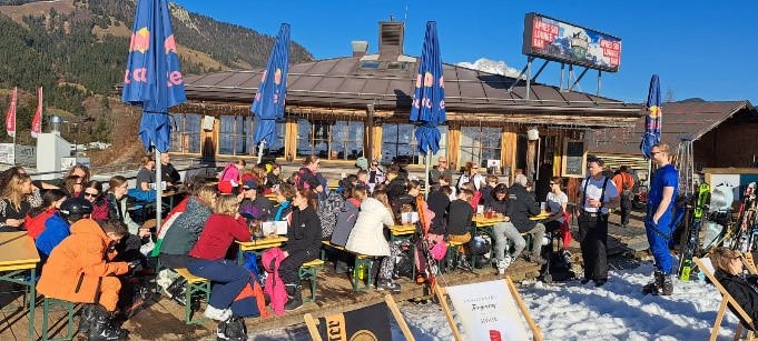 Iedereen kleedde zich in recordtempo om en we stonden al snel bij de verhuur in Fieberbrunn om alle materialen op te halen. Toen iedereen eenmaal met ski’s, stokken en skischoenen op de piste stond, kon het grote genieten beginnen. De zon scheen uitbundig en de temperaturen waren hoog genoeg om het allesbehalve koud te krijgen. Aan het eind van de dag is iedereen moe, heel en voldaan teruggegaan naar ons huis. Na het avondeten stond de activiteit Eisstockschießen in de planning, alwaar het een serieuze wedstrijd werd en er hard om de punten werd gespeeld. Na deze activiteit wilde iedereen graag gaan slapen.